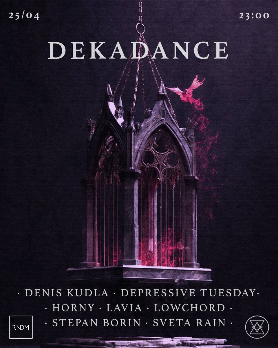 Пора открыть тусовочный сезон в любимом RNDM, мы ужасно соскучились по нашим вечеринкам в его стенах! 🖤 Впереди насыщенные выходные, поэтому давайте возьмем пятничный разгон под грувовое звучание и хардовые сеты наших резидентов, которые откроют эту ночь прогрессив техно и хардгрувом, и друзей, уводящие вглубь жесткого звучания, погружая в ритмичный транс плотной жесткой бочки. 📖 Состав этой ночи: - DENIS KUDLA - DEPRESSIVE TUESDAY - HORNY - LAVIA - LOWCHORD - STEPAN BORIN - SVETA RAIN 🎟️ Билеты FC/DC 18+ 📆 25 апреля, в 23:00 📍 RNDM, Москва, Наставнический пер., 13/15с3