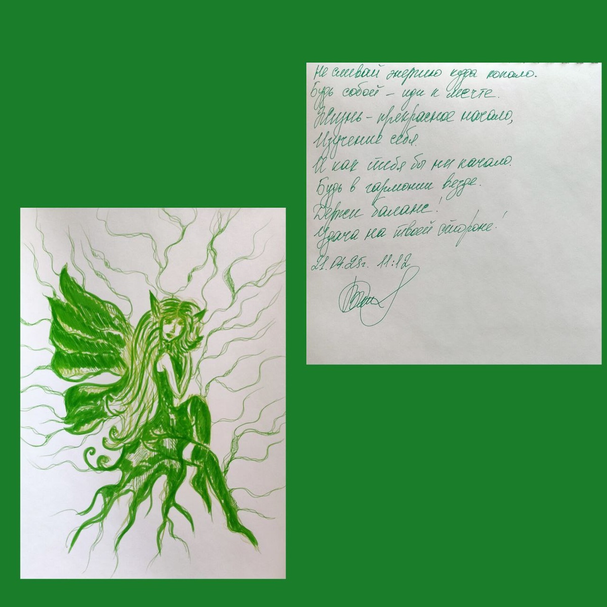 Рисую с @MariaSemprericca Мария Назарова цветных фей🧚🏻♂️ Так получилось, что прошлая неделя меня выбила из гармоничного состояния. А так как, впереди очень много значимых событий и мероприятий, мне срочно нужно вернуть свою гармонию и баланс. И я решила поработать с зелёным цветом. Он вероятно наполняет меня и успокаивает. Но самый лучший способ усилить эффект, это конечно запустить нейролинии, погрузиться в архетипы, послушать подсказки подсознания. Видео уроки с подсказками от зеленных необычных авторских мак карт, потрясающая фоновая музыка сделали своё дело. Даже во время рисования снова родилась стихоформа мыслей (давно не писала стихи, а тут опять🙂) От всей души благодарю своего учителя Марию Анатольевну Назарову за созданный курс💚