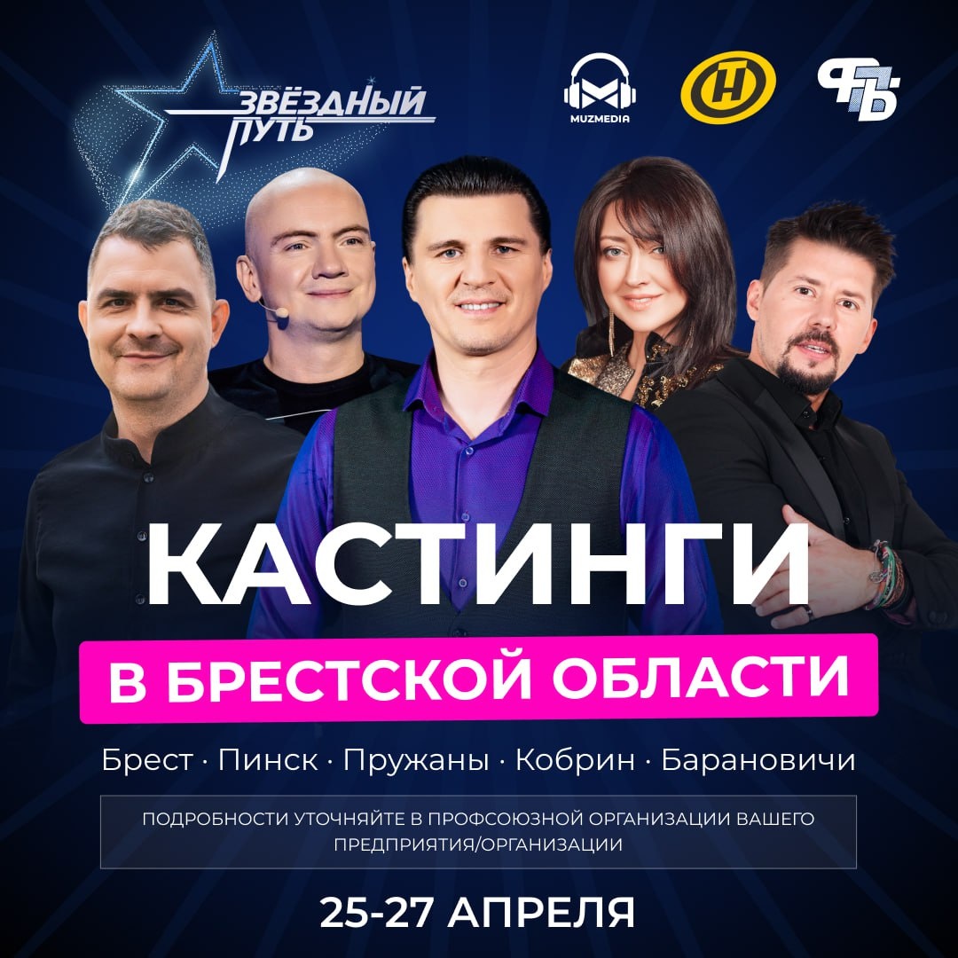 Информация для тех, кто любит петь: "Звездный путь" проводит кастинги в Брестской области. Делимся графиком и подробностями TikTok | VK | OK | Instagram | Сайт| Прислать новость