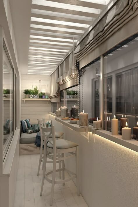Фото-пример: Балкон 4 м² в ЖК «Лазурный» (Самара) с барной стойкой, зеркалом в раме и гирляндами.