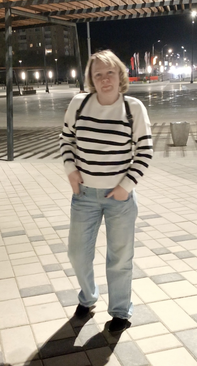 Приветствую всех на своём канале! И вновь хочу показать вам одежду, которая покупалась 3-5 лет назад в сх. В основном, это покупки, сделанные в магазине "Мегахенд". Я не рекламирую магазины этой сети⛔!!!! Я бы с большим удовольствием посещала "Планету секонд хенд" , "Во! Ва!", "ZigZag Удачи" и другие, но у нас их нет. Совсем нет🫦! Поэтому, приходится довольствоваться малым 😊. Во вчерашней статье рассказывала про эти джинсы G Star. Это - они же самые. Вечером ходили гулять, и я решила вновь в них вырядиться 😂. Свитер был куплен в Фамилии. Кожаный рюкзак - Авито. Обувь (искусственная замша) куплены на вещевом рынке лет 6 назад, примерно , и , как и вчерашние кроссы, надоели, но никак не развалятся🤣. Это фото тоже было во вчерашней статье. Но если вчера я больше показывала джинсы, то сегодня прошу обратить вас внимание на блузку в рубашечном стиле из хлопка. И она по-прежнему мною любима))) Так я сегодня приехала на работу. Шерстяной кардиган покупался в Мегахенде, также как и