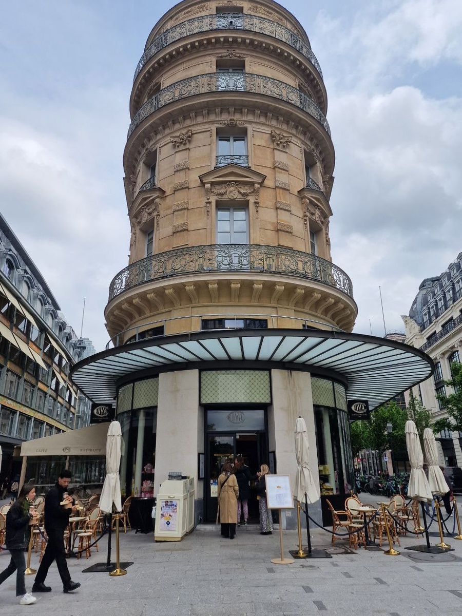 Вот кафе — COVA, на углу rue du Louvre и rue de Rivoli. Бренд родом из Милана, с улицы Монтенаполеоне, и ведёт историю с 1817 года. В Париже они открылись недавно, но с тем же акцентом на кофе и выпечку. Если нужен хороший круассан и эспрессо — это одно из моих проверенных мест. Бывая в Париже, обязательно захаживаю. Советую. Является ИИР😀