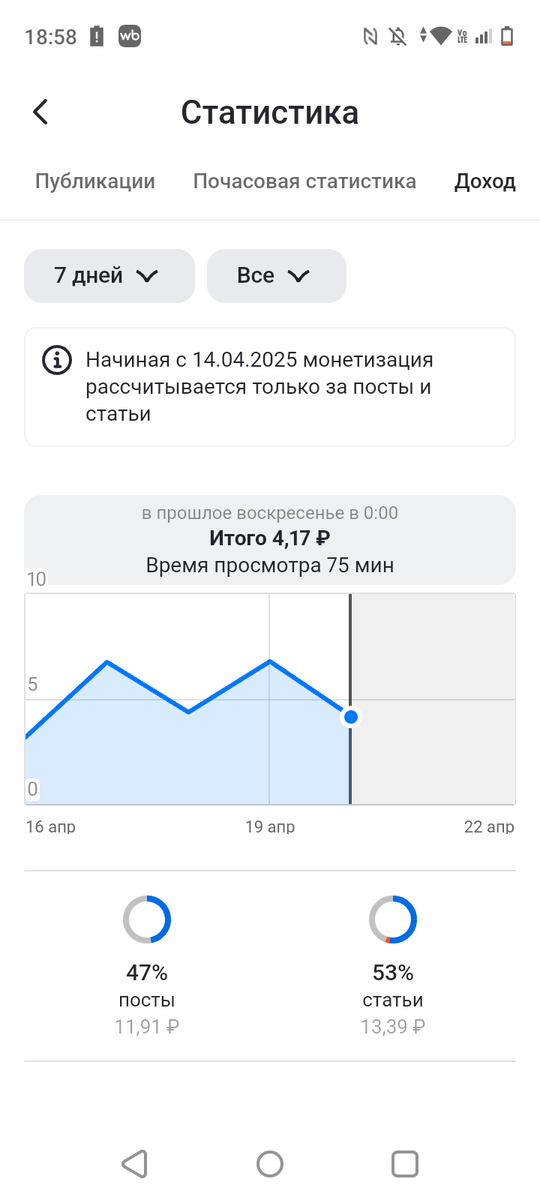 Сегодня 23.04.2025 и я решила посмотреть за сколько дней я дойду до отметки в 100₽