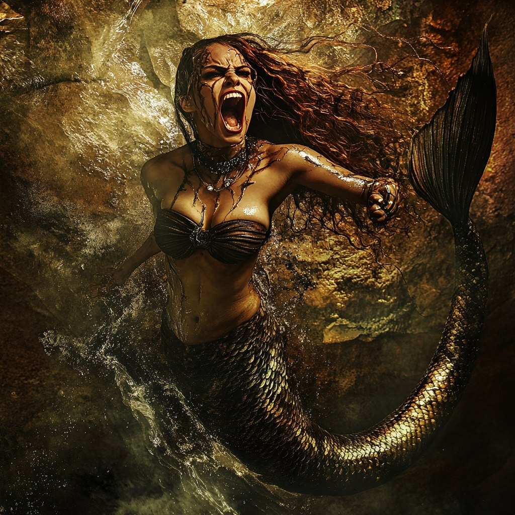 Создано на основе запроса: screaming Medusa mermaid with a sleek serpentine tail, beautiful but angry face, serpentine tail, full body image of a mermaid beautiful yet frightening in her rage --- Автоперевод: Кричащая Медуза Русалка с гладким змеиным хвостом, красивым, но злым лицом, змеиным хвостом, изображение всего тела -русалки красиво, но пугающе в ее ярости Неплохо вышло? 🤔 https://dzen.ru/id/65c0c65c86e4f837c27b24d7 #ИИ #AI #нейросеть #midjourney #art