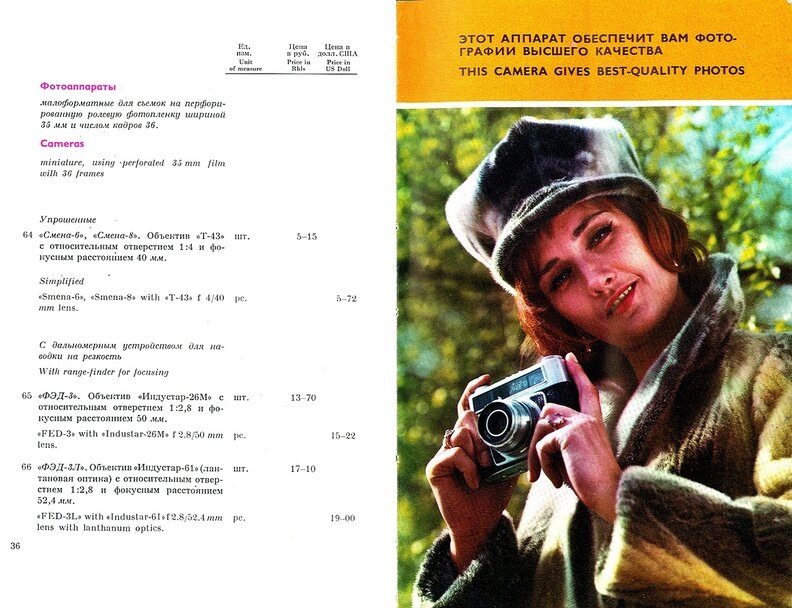Идеология социалистического строя долгое время утверждала, что реклама — это пережиток капитализма. Мол, качественный товар в рекламе не нуждается и нечего там поднимать себестоимость товара лишними расходами на рекламу. Увы, на практике всё оказалось не так-то просто. Первыми это поняли экспортеры: успешно торговать в капстранах без рекламы невозможно. Где же взять фотомоделей? Решение нашлось простое и бесспорное: привлечь к этому делу известных советских киноактрис, благо западный покупатель их знал хорошо по качественным фильмам. Поэтому каталоги внешней торговли СССР напоминали журнал «Советское кино» Тут народная актриса СССР Зинаида Кириенко рекламирует фотоаппараты Народная артистка СССР, певица Майя Кристалинская, убеждает иностранцев срочно купить радиолу "Эстония-4" Народная артистка СССР, Мира Кольцова, пленительным взглядом рекламирует радиоприемник "Банга". Практически все известные советские артистки успели не раз поучаствовать в рекламе советских товаров на экспорт.