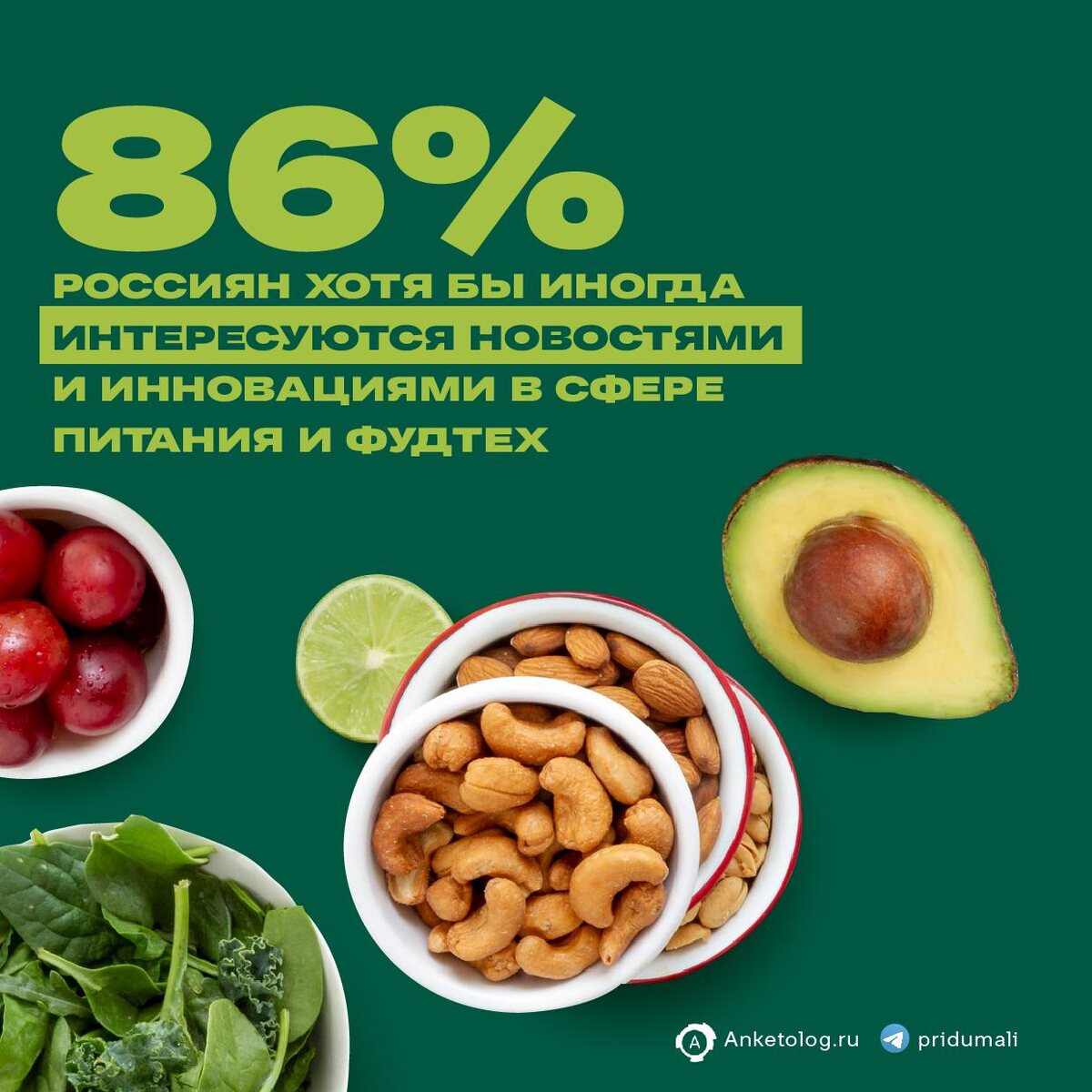 Функциональное питание – самый популярный тренд у россиян, об этом заявили 59% опрошенных В свежем исследовании АНКЕТОЛОГА подробный разбор формата «функциональных продуктов»: какие категории популярны, где заказывают, какие факторы влияют на покупку, как часто в рационе, откуда получают информацию о новинках и не только. В сегодняшнем посте первая часть опроса, вот некоторые данные: 🟢71% опрошенных стараются придерживаться правильного питания 🟢86% россиян хотя бы иногда интересуются новостями в сфере питания и фудтех 🟢84% пользуются сервисами доставки 🟢интерес к персонализированному питанию выразили 41% опрошенных 🟢11% употребляют функциональные продукты регулярно Важные цифры мы с коллегами завернули в карточки. Сохраняете, делитесь. А полное исследование сможете найти 👉 в источнике. 👉подписаться на @pridumali #исследования