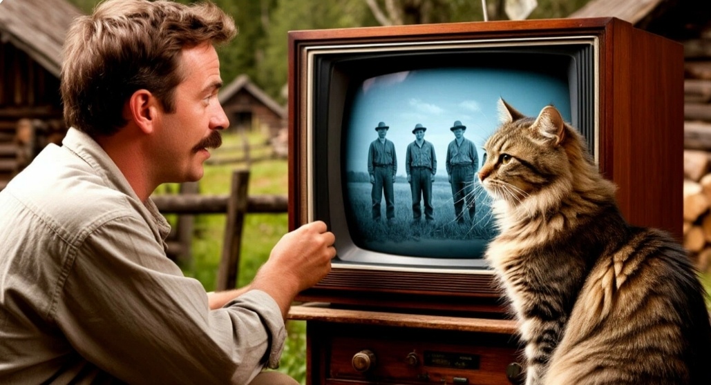 Федя копался в сарае, разбирая хлам, оставшийся от деда. Под слоем паутины и мышиного помета его взгляд упал на странный прямоугольный предмет. — Ну и чертовщина... — прошептал он, сдувая пыль с деревянного корпуса. Перед ним стоял легендарный телевизор «Рекорд» с выпуклым экраном, двумя ручками настройки и антенной, похожей на рогатку. — Мать честная! — Федя отпрянул. — Да это ж артефакт древних цивилизаций! Кот Царь, наблюдавший за процессом с крышки бочки, презрительно фыркнул: — Мр-р-р... (что примерно означало: «Опять ты нашёл какую-то дрянь») — Да ты что, слепой?! — воскликнул Федя. — Это же не просто телевизор! Это... — он сделал драматическую паузу, — машина времени! Кот зевнул и начал вылизывать лапу, демонстрируя полное отсутствие интереса. Федя с трудом втащил находку в дом и подключил к розетке. Раздалось тревожное гудение, экран вспыхнул тусклым светом... и тут же погас. — Чёрт! — Федя стукнул кулаком по корпусу. И вдруг — о чудо! — на экране заме