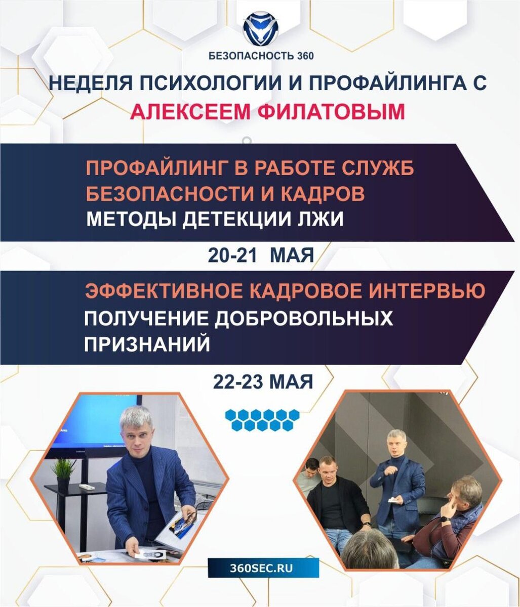 Остался месяц до ОЧНОГО интенсива по профайлингу и детекции лжи для нужд корпоративных служб безопасности! Такого еще действительно не было! 🔥 Всех, кто занимается кадровой безопасностью, противодействует мошенничеству и коррупции, проводит внутренние расследования и проверки кандидатов на работу - мы приглашаем на Неделю психологии и профайлинга с Алексеем Филатовым с 20 по 23 мая! 🗓️ 20 и 21 мая пройдет базовый тренинг "Профайлинг в работе служб безопасности и кадров. Методы детекции лжи", который дает теоретические знания и практические навыки выявления лжи в ходе коммуникации. Чтение собеседника "на лету", выявление скрытых мотивов по вербальным и невербальным сигналам - все это вам пригодится как на работе, так и в повседневной жизни. 🗓️ 22 и 23 мая запускаем новый тренинг мастера оперативной психологии "Эффективные кадровые интервью. Получение добровольных признаний". И снова, это не только для специалистов по кадровым проверкам и расследованиям. Навыки построения беседы
