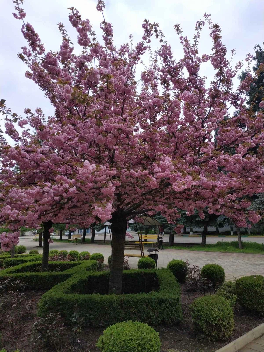 Техничка Таня: "Христос воскрес, Елена Сергеевна! Не будет у вас первой пары. Первый курс забрали в главный корпус на какую-то встречу. Ихняя классная забыла вам позвонить." Спасибо, Таня. Я ничуть не обиделась на "ихнюю" классную. Такая стоит на улице благодать! Жарко! А в помещении холодно. Пойти пройтись, что ли? Целый час с лишком времени. Пошла. И как хорошо, что пошла... Как-то так сложилось в жизни, что не верю ни в какие случайности. Случайно мы можем только локтем кого-то задеть. Если заденут нас, надо верить, что это - случайность... Такой добрый, тихий день вчера был. Никуда не хотелось идти. А сегодня ноги сами принесли в один из городских парков. А там! Сакура там зацвела! Такое великолепие! Парк далеко от дома. Могла и пропустить красоту такую. Она недолговечная... Постояла, полюбовалась. Повернулась было уйти. А со скамейки, что напротив розовой цветущей роскоши была, негромко окликнула сидящая на ней женщина. Я так давно её не встречала...И боялась встретить. Ещё больше