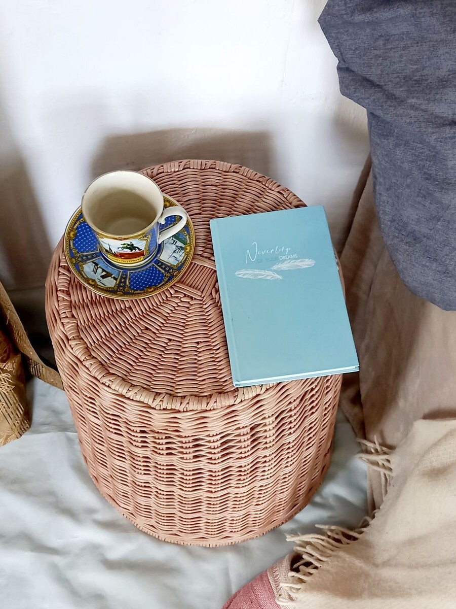 Корзина для хранения пледов,подушек,мягких игрушек,белья чистого и грязного,как декор для дома и интерьера,прикроватный столик. Корзина без крышки,ручки врезные. Корзина без внутреннего чехла,Не подойдет для хранения оочень деликатных тканей шелк и кашемир,для хранения таких деликатных вещей обязателен чехол.У корзины нет торчащих палок и острых краев,она безопасна для простых тканей,но для деликатных нет т.к. есть места соединения лозы где кашемир из за своей мягкости и воздушных петель зацепится за соединения для шелка и кашемира они не безопасны. Корзина из бумажной лозы,но её можно мыть водой не расскиснет. Нельзя на нее садиться сломается,погнется т.к. плетение ажурное,не плотное,воздушное корзина выдерживает небольшую нагрузку от хранения вещей,перенос в другую комнату,а вес сидящего человека не выдержит. Не подойдет для хранения острых,мелких и очень объемных вещей т.к. острое проткнет стенки,мелкое высыпется через рисунок,сильно объемное и тяжелое выдует стенки и растянет и