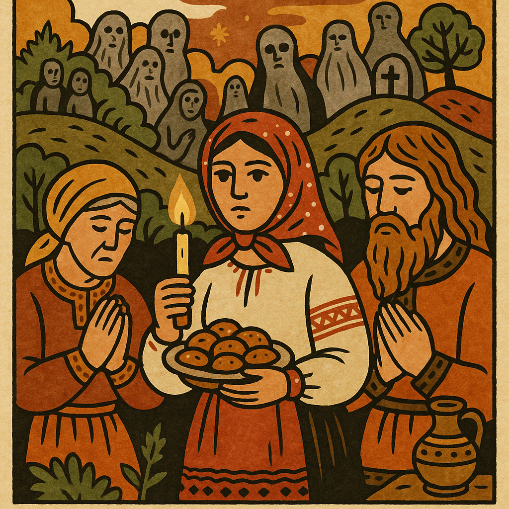 Слово "Навь" в славянской мифологии обозначает потусторонний мир, где пребывают души усопших. В этот день их поминали с благоговением, просили защиты и благословения рода. Навий день — это не траур, а день связи времён и укрепления духовной родовой нити.