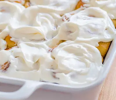 Большие, мягкие, домашние булочки с корицей неотразимы с глазурью из взбитого сливочного сыра, которая тает на тёплых булочках. Очень вкусные свежеиспечённые булочки, пока они тёплые, но они также хорошо разогреваются. Эти простые булочки с корицей - это идеальный завтрак. Обязательно попробуйте их приготовить. Вот рецепт булочек с корицей. Продукты необходимые для их приготовления: Для булочек: 200 мл тёплого молока, 2,5 ч. л. быстрорастворимых дрожжей одно большое яйцо комнатной температуры 1 ст. л. несоленого сливочного масла 1 ст. л.,растопленное 4 ст. л. сахара 1/2 чайная ложка соли 3 стакана пшеничной муки + от 2 до 4 ст. л. Для начинки: 1 ст. л. несолёного сливочного масла размягчённого, + ещё немного для смазывания формы 100 г сахара 1,5 ст. л. молотой корицы. Для глазури из сливочного сыра: 1 ст. л. несолёного сливочного масла, размягченного, 115 г размягченного сливочного сыра 0,5 ст. л. ванильного экстракта 200 г сахарной пудры. Время приготовления: 2 часа. Все нужные продук