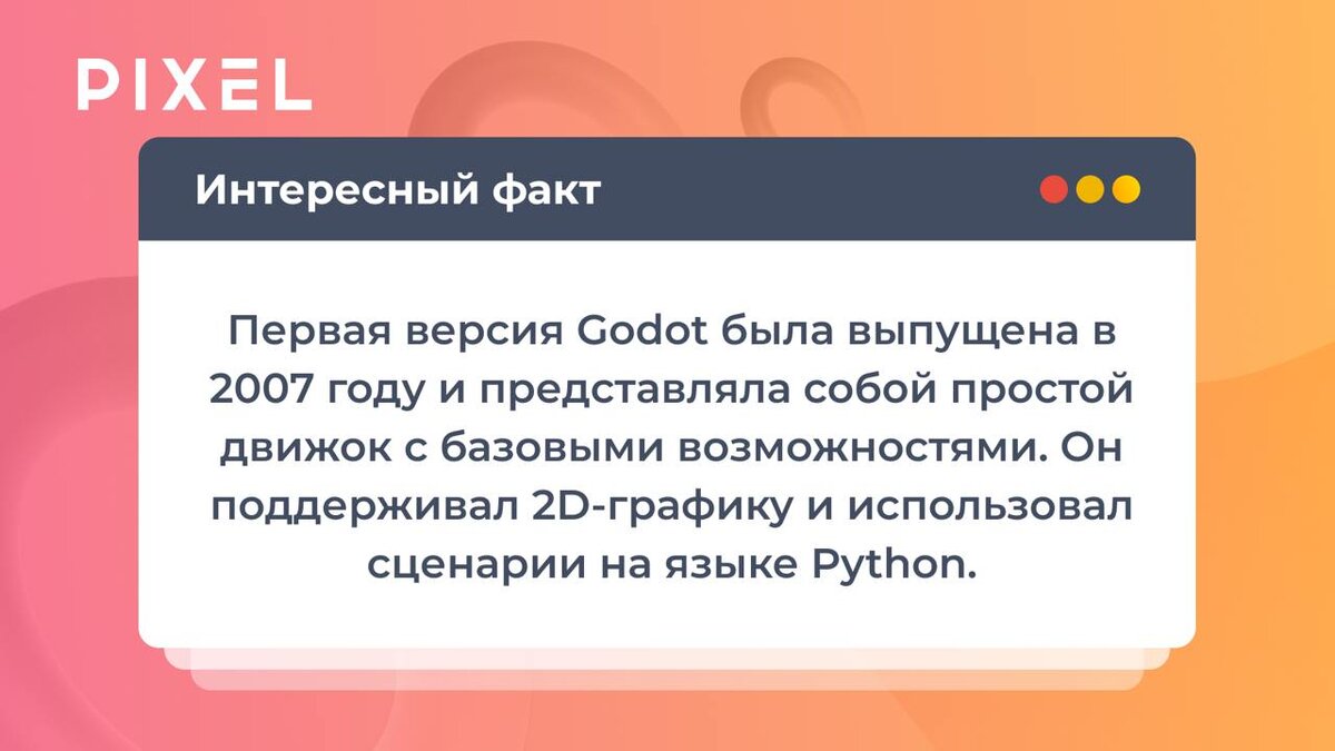 🚀 За скромным началом часто скрывается грандиозный потенциал. Godot — это не просто движок, а настоящая творческая вселенная для разработчиков. А вы знали, что первая версия Godot вышла ещё в 2007 году? Тогда это был простой инструмент с базовой 2D-графикой и сценариями на Python. Сегодня же он превратился в мощную платформу, на которой создаются игры мирового уровня! 🌟 Знаете ли вы, что такое Godot? 💭