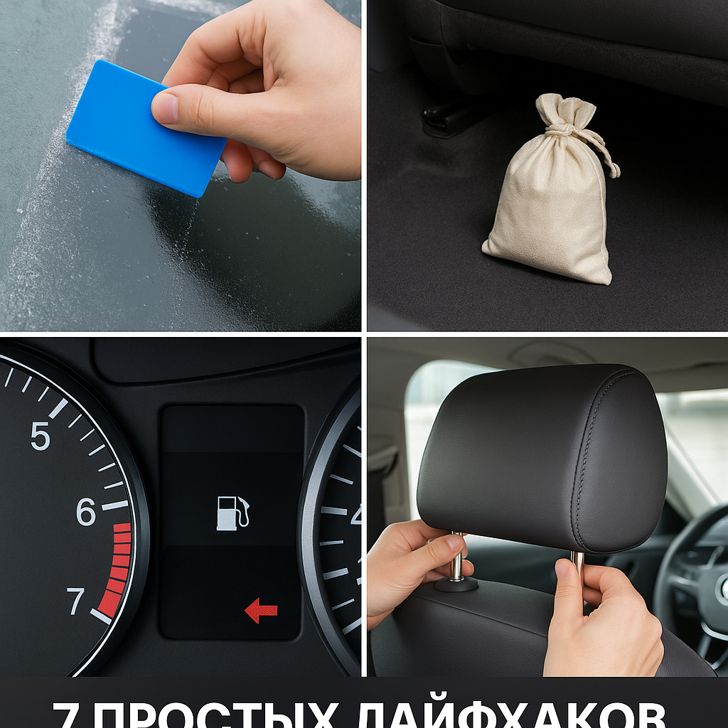 Водительский опыт приходит с годами, но есть простые советы, которые могут облегчить поездки и сделать их безопаснее. Эти лайфхаки подойдут как новичкам, так и бывалым автомобилистам. Зимой нередко приходится счищать лёд со стёкол, а скребка под рукой может не оказаться. Отличная замена — обычная пластиковая карта. Она не повредит стекло и справится с задачей в экстренной ситуации. Если в автомобиле запотевают стёкла, особенно в дождливую или снежную погоду, поможет обычный рис. Он отлично впитывает влагу. Насыпьте его в носок или тканевый мешочек и положите под переднее сиденье. Стёкла станут чище и суше. Если вы садитесь за чужой автомобиль или арендованную машину, просто посмотрите на стрелку возле значка бензоколонки на приборной панели. Она указывает, с какой стороны расположен лючок бензобака. В экстренной ситуации, если нужно выбраться из машины через окно, можно использовать металлические направляющие подголовника. Вытяните его и ударьте концами по стеклу — оно разобьётся