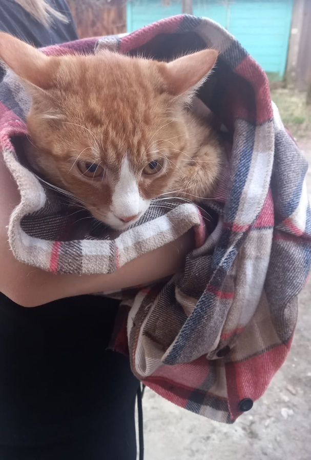 Этого рыжика теперь зовут Матвей. Дело было белым днем. Гулявшие во дворе многоквартирного дома дети заметили, что с высоты летит кот. Открытым оказалось только одно окно, на 4 этаже. Несчастный питомец упал на козырек подъезда, затем - не трубу, после уже на асфальт. Можно было бы подумать, что он просто выпал, как это бывает у безответственных хозяев, но... ...следом, в одних, простите, трусах, из подъезда выскочил неадекватный пьяный гражданин и направился прямиком к коту. Он схватил животное за сло ман ную лапку и начал воз ить по асфальту, после чего поднял за нее же, чтоюы посмотреть на кота. Питомец при этом совершенно не ше велил ся, висел тряпочкой. Люди и дети видившие эту картину принялись кричать на мужчину и требовать оставить кота в покое. Неадекват что-то пробубнил, бросил питомца и вернулся в подъезд. Люди собрались, и пошли в квартиру, из которой, по их мнению, выпал кот. Дверь открыла гражданка, в состоянии алкогольного опьянения, ничего путного она не ответила и не п