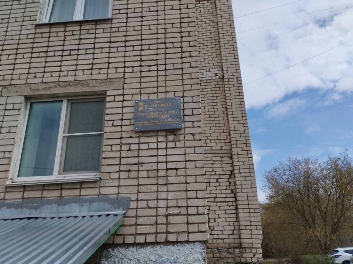 Ее мраморная предшественница была установлена сорок лет назад в торце дома №25 по улице Матросова, выходящем как раз на улицу Панфиловцев, и за эти годы заметно поизносилась. Поэтому в преддверии 80-летния Великой Победы решено было ее обновить.