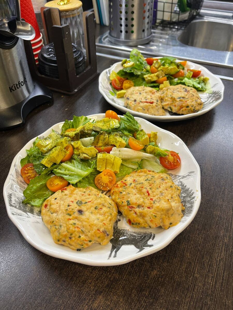 Я не веду блог о правильном питании, но иногда хочется приготовить что-то вкусное и при этом менее калорийное. Вот мой рецепт сочных куриных котлеток, которые готовятся без масла и при этом остаются невероятно вкусными! Ингредиенты 🟠200 г куриных бёдер 🟠200 г куриного филе 🟠1 яйцо 🟠1 красный болгарский перец 🟠1 красная луковица 🟠Пучок петрушки, кинзы или укропа (на ваш вкус) Приготовление: ➡️ Фарш: Я делаю фарш в блендере – просто кладу мясо и перемалываю. ➡️ Овощи: Перец, лук и зелень тоже измельчаю в блендере (можно нарезать мелкими кусочками, но в блендере быстрее). ➡️ Смешиваем: Добавляю овощной фарш и яйцо к мясному фаршу, солю по вкусу и тщательно перемешиваю. ➡️ Формируем котлетки: Лепим котлетки и выкладываем их на противень. ➡️ Запекаем: Ставим в духовку, разогретую до 200°C, на 20 минут. 🔥 Совет: Я обычно готовлю эти котлетки на гриле – получается просто божественно! Но решила показать вариант с духовкой, так как гриль есть не у всех. Если у вас есть гриль, обязательно