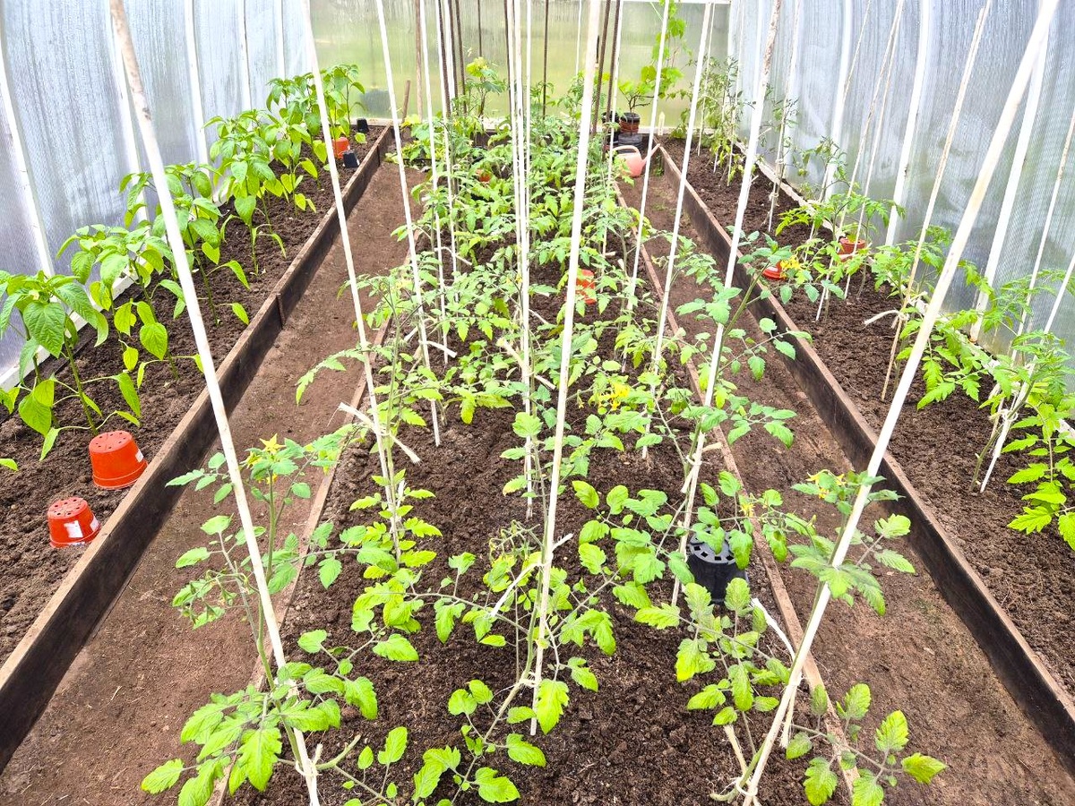 Томаты, перцы и баклажаны после пересадки в летнюю теплицу. Фотообзор