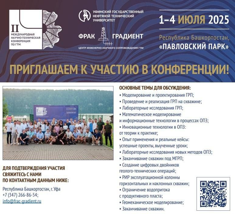 С 1 по 4 июля 2025 года в Республике Башкортостан пройдет II Международная научно-техническая конференция по ГТМ