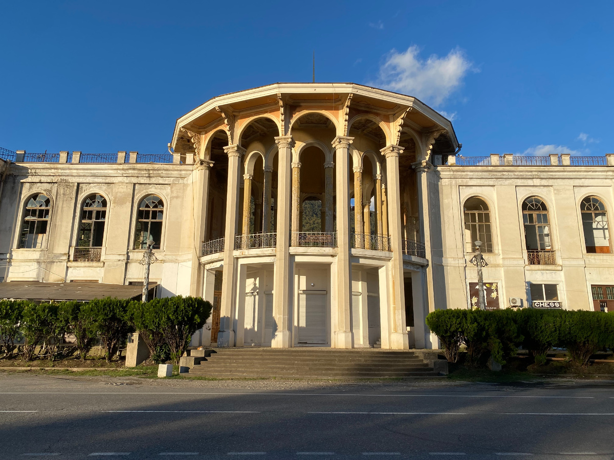 После посещения Дачи Сталина мы спустились на основную дорогу до Сухума и настроились ехать без долгих остановок до темноты. Но не смогли проехать мимо такого красивого здания. Железнодорожная станция Новый Афон Станция была открыта в 1944 году, а здание вокзала построено в 1967. Красивое здание в стиле советского неоклассицизма украшал центральный открытый зал в виде ротонды с колоннами, куполом и арками. И даже сейчас, в заброшенном состоянии, он смотрится очень красиво. Остальные помещения станции выглядели еще хуже. Сама станция функционирует, на ней останавливаются поезда, идущие из Сухума. И такой мы увидели эту станцию из окна поезда на обратном пути. Лучи уходящего солнца придавали интерьерам особенную красоту, но не могли скрыть следы разрушения... После остановки на ж/д станции мы настроились ехать до темноты и поставить палатку в хорошем месте. И это было самое красивое место ночевки в нашем велопутешествии!