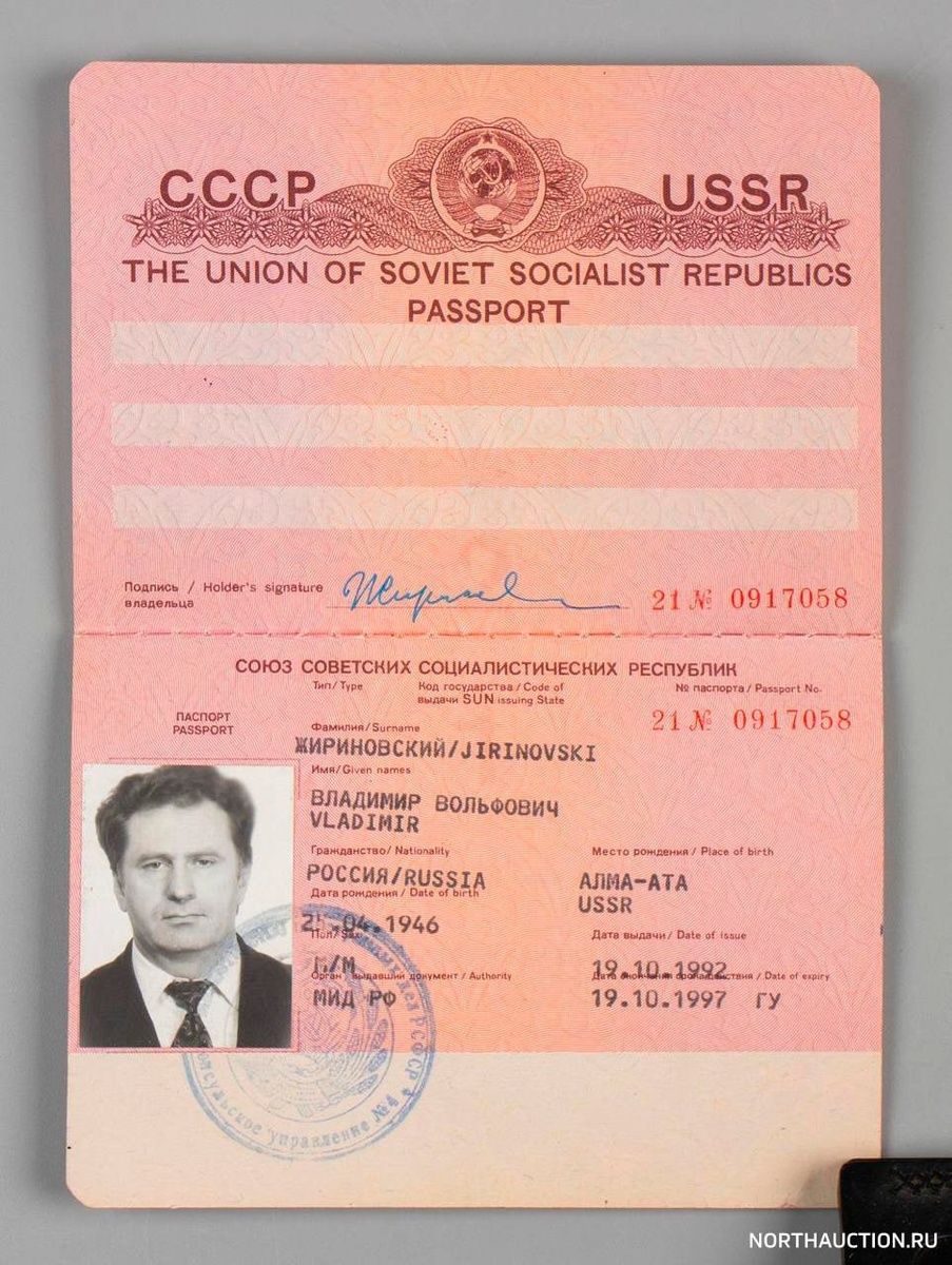 Загранпаспорт Жириновского выставили на аукционе в Петербурге, начальная цена составила 100 тысяч рублей, следует из данных "Северного