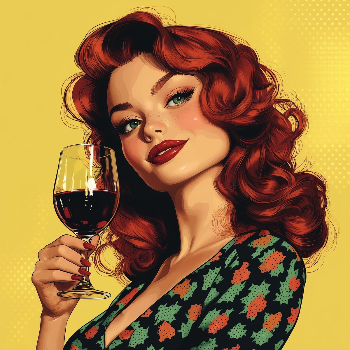 Создано на основе запроса: beautiful girl in a festive elegant blouse, face in semi-profile, slightly turned towards the viewer, beautiful red curls of hair, cute look, smiling, holding a glass of wine in her hand, close-up, portrait in the style of comics by Roy Lichtenstein --- Автоперевод: Красивая девушка в праздничной элегантной блузке, лицо в полупрофильной, слегка повернувшаяся к зрителю, красивые красные кудри с волосами, милый вид, улыбаясь, держит бокал вина в руке, крупный план, портрет в стиле комиксов Роя Лихтенштейна Интересно вышло? 🤔 https://dzen.ru/id/65c0c65c86e4f837c27b24d7 #ИИ #AI #нейросеть #midjourney #art