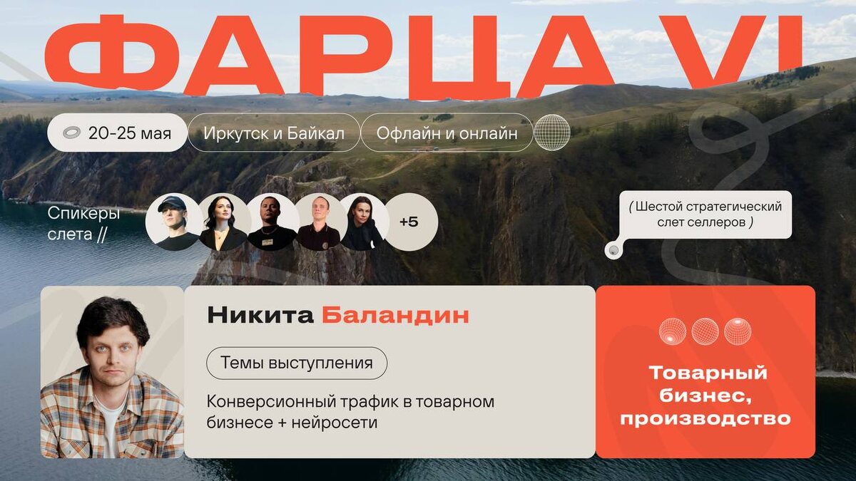Еду на Фарца VI с 20 по 25 мая — это шестой стратегический слёт селлеров. В этот раз — *Байкал, Иркутск, 6 дней, офлайн и онлайн*. И я там не просто участник, а спикер с темой, которая реально сейчас стреляет: 💥 Конверсионный трафик в товарном бизнесе + нейросети. Буду разбирать, как перестать гоняться за «кликами» и начать превращать трафик в реальные деньги. Покажу: - как я выстраиваю воронки под товары так, чтобы они работали 24/7; - как упаковываю карточку в систему, где каждая деталь — на рост; - какие нейросети использую в креативах, УТП и аналитике; - как не сливать бюджет, когда всё резко меняется. Что такое Фарца: Это не «конфа на 1 день» в душном зале. Это 6-дневное погружение, где собираются: – селлеры с оборотами в сотни миллионов, – топы WB, Ozon и других платформ, – мощнейшие спикеры — Михаил Токовинин (amoCRM), Евгения Соколова (Хогвартс маркетплейсов), Макс Попов (бренды Huter, Вихрь, Ресанта), Юлия Гарусова (Zarina, Melon fashion group) и ещё десятки человек, с котор