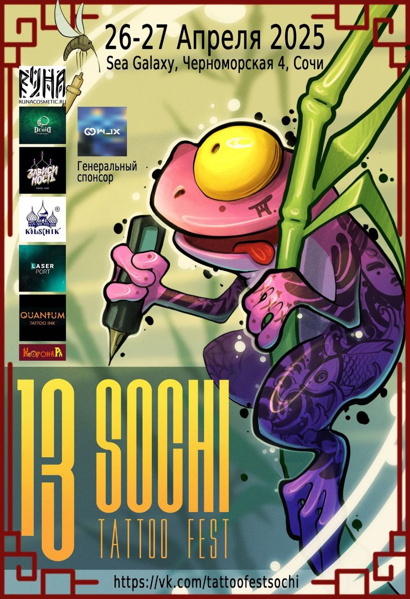 Приглашаем всех любителей татуировки на 13 Tattoo Fest Sochi 26 и 27 апреля @tattoofestsochi в Sea Galaxy Hotel Congress & SPA, Конгресс холл, по адресу Черноморская 4, Сочи. Вы увидите, как лучшие мастера страны создают свои работы, познакомитесь с новыми направлениями в тату искусстве. Вы сможете выставить свою татуировку в конкурсе заживших работ и, возможно, взять награду для своего мастера, а также сделать себе татуировку прямо на фестивале. Мы разыграем сертификат на футболку с вашим индивидуальным дизайном в конкурсе «лучшая байкерская татуировка» и сертификат на сеанс лазерного удаления в конкурсе «самая плохая татуировка». На фестивале пройдёт конкурс Боди арт, и у вас останутся красивые снимки с яркими, необычными персонажами. Вы увидите модное дефиле с татуированными моделями от мастерской костюма Корона Ра. Весь фестиваль для вас будут работать ведущий и диджей Мел из Санкт Петербурга и тату модель диджей Kaprizz. А любителей шопинга ждет маркет - ювелирные украшения из с