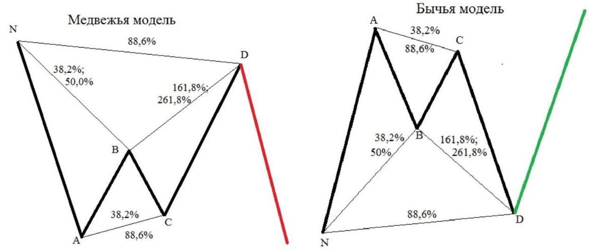 #паттерны Паттерн Летучая мышь является одной из разворотных моделей среди паттернов Гартли. ⬆️При бычьей модели встречается повтор уровня поддержки, а при медвежьей модели - сопротивления около уровня точки Х. Возврат ценового уровня будет в точке D при 0.886 ретрейсменте ХА в потенциальной разворотной зоне. ⬇️При медвежьей - часто превращается в модель Краба, в которой точка D превышает точку Х. В данной модели обычно имеется удлинённый участок CD, который в 1.27 раз превышает АВ, обеспечивая благоприятный риск. Основные особенности для обнаружения паттерна летучая мышь: ⚫️необходимость наличия 0.886 ретрейсмента XA к точке D. Точка D не должна превышать точку Х, если это так, то полученный паттерн неправильный. ⚫️все остальные уровни Фибоначчи должны близко располагаться в потенциальной разворотной зоне; ⚫️участок CD должен быть длинней AB в 1.27 раза. Допустимо и равенство данных отрезков, но при этом вероятность соответствия паттерна необходимому минимальна; ⚫️минимальное от