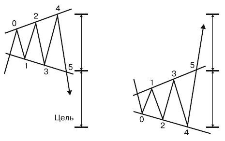 #паттерны Расширяющийся треугольник - это формация, при которой из одной точки на графике в границах треугольника постепенно увеличивается волатильность. Паттерн состоит минимум из четырех точек минимумов и максимумов. Внутри себя фигура показывает неопределенность на рынке, меняя восходящее и нисходящее направление цены. В отличии от обычной фигуры треугольника, формирование расширяющегося сопровождается повышением объемов. Это происходит потому, что количество участников рынка последовательно растет, как и напряжение на рынке. Фигура может оказаться ложной, начав формировать симметричный треугольник. В результате образуется паттерн Бриллиант. ⚫️Рекомендуется торговать среднесрочными и долгосрочными позициями на более старших таймфреймах от 1H и выше. ⚫️Определите текущий тренд рынка. Вероятнее всего расширяющийся треугольник начнет формироваться в конце тренда, так как фигура является признаком неопределенности на рынке. ⚫️Обратите внимание на новостной фон. Если появляется фиг