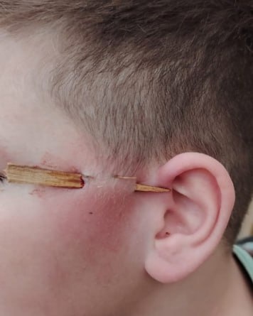 😮😱Школьнику проткнули палкой лицо на детской площадке в Подмосковье Жуткую травму получил третьеклассник во время конфликта на одной из детских площадок в Пушкино. Полноватый мальчик встретил ровесника, который начал его оскорблять и унижать, пишет «МК». Хулиган назвал сверстника «беременным», язвительно уточнил, когда тот родит. Словесными нападками буллер не ограничился: схватил с земли палку, переломил пополам, и одну деревяшку буквально вонзил одногодке в лицо. Щепка насквозь пробила кожу в районе виска. Пострадавшего госпитализировали.