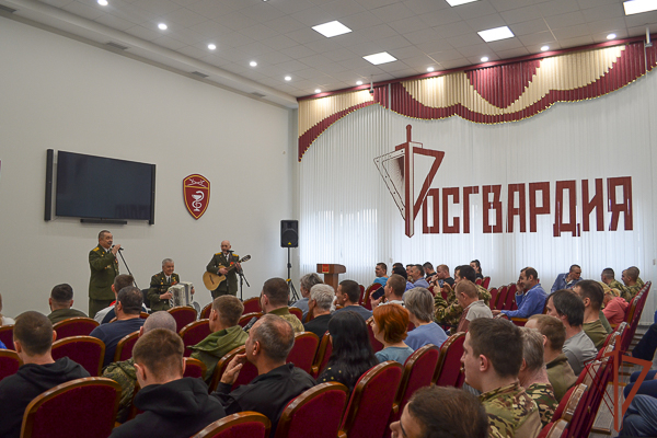 В 5 военном клиническом госпитале Уральского округа Росгвардии для военнослужащих и сотрудников – участников специальной военной операции, находящихся на излечении, а также персонала медицинского учреждения состоялся концерт «Офицерского трио». Творческий коллектив состоит из ветеранов войск правопорядка Юрия Куксина, Александра Шестаков и Петра Малаховского. Участником выступления также стал известный уральск