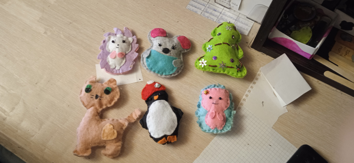 Я не помню говорила или нет так вот я хожу на кружок по фетру и шью.