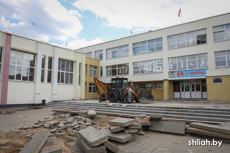 В СШ №5 Сморгони начали ремонт крыльца и пришкольной территории