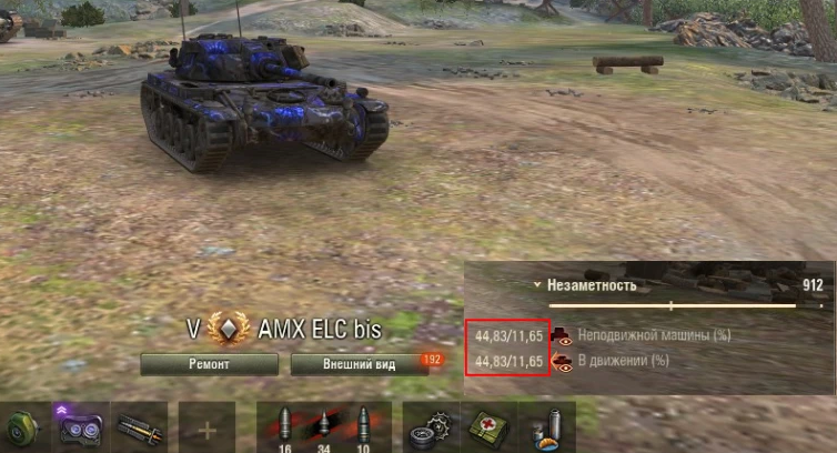 Наиболее серьёзная ошибка — незнание принципов работы системы маскировки у танка. Основной фактор, который приводит к гибели множества неосведомлённых танкистов, — это практически полная потеря маскировки при выстреле. Если вы стреляете из-за прозрачного куста и находитесь в пределах видимости вражеских танков, то вы будете обнаружены (относительно безопасная дистанция — 400 метров до врага). Причём обнаружение практически неизбежно и возможно на любом типе техники. Это важно понимать и учитывать при каждом выстреле. Теперь подробнее о кустах и о том, как правильно из них стрелять. Почему обнаружение неизбежно и как это происходит, я расскажу далее. Стоит ли танк на месте или находится в движении — неважно. Только лёгкие танки могут сохранять маскировку при движении, аналогичную той, что была бы при нахождении на месте. У остальных танков любое движение, даже поворот корпуса на доли секунды, находясь в зоне видимости вражеского танка, снижает маскировку на 5 секунд. Это необходимо учит