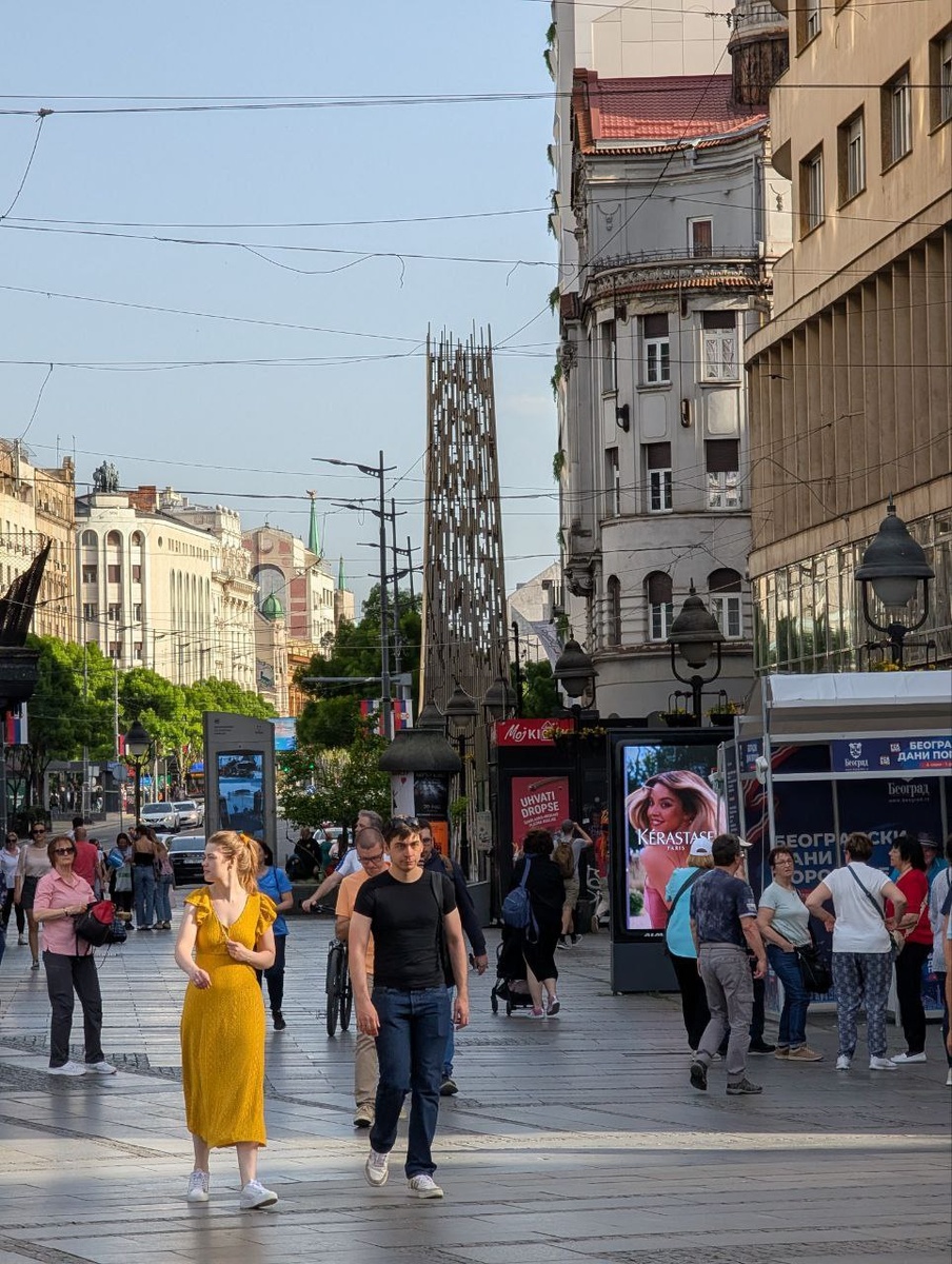 Улица Князя Михаила. Белград. 21.04.2025. Белград — очень древний город, живущий на стрелке больших рек — Дуная и Савы. Как в любом большом городе, в нём тоже есть свой Арбат. Своя пешеходная улица, которая привлекает толпы туристов, собирает в одном месте музыкантов и ремесленников, готовых привлечь своим мастерством толпы зевак. Интересная особенность улицы Княза Михаила — многочисленные незаметные проходы сквозь здания, благодаря которым можно попасть на параллельные улицы и заглянуть во внутренние дворики, где прячутся маленькие магазинчики. Уютные летние кофейни, атмосферные здания, колоритные люди, облупившиеся стены, дух старой Европы.