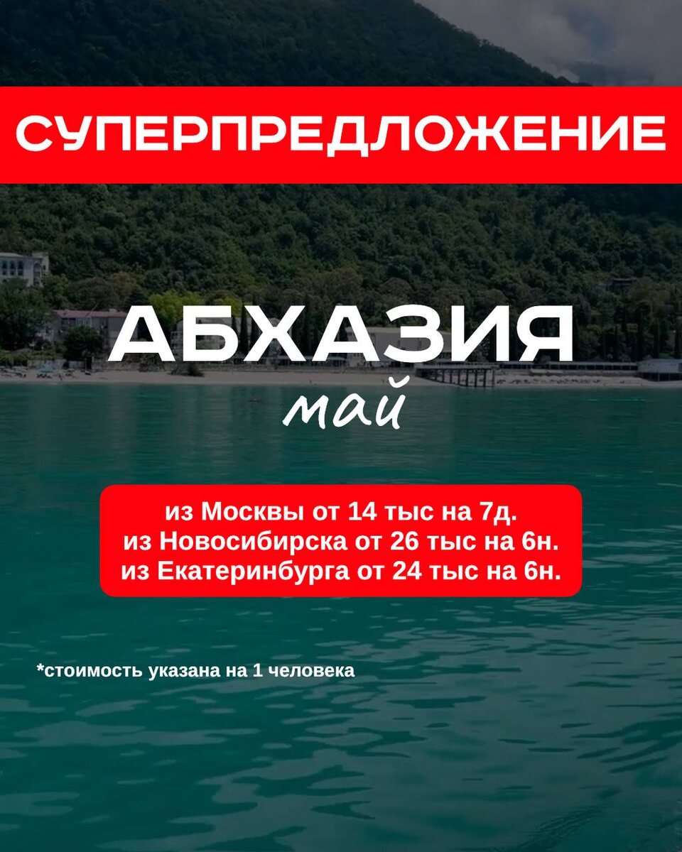 Вы вообще видели такие цены⁉️ Абхазия в мае от 14 тыс за человека за 7 дней! Включая перелет и проживание Жмите здесь, чтобы увидеть все варианты А потом можно паковать чемоданы 🧳