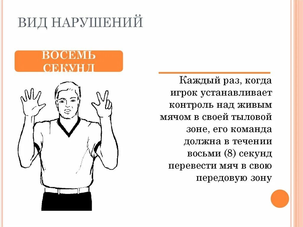 5. Свисток: Если команда не переводит мяч в зону нападения в течение восьми секунд, свистните и укажите на нарушение.