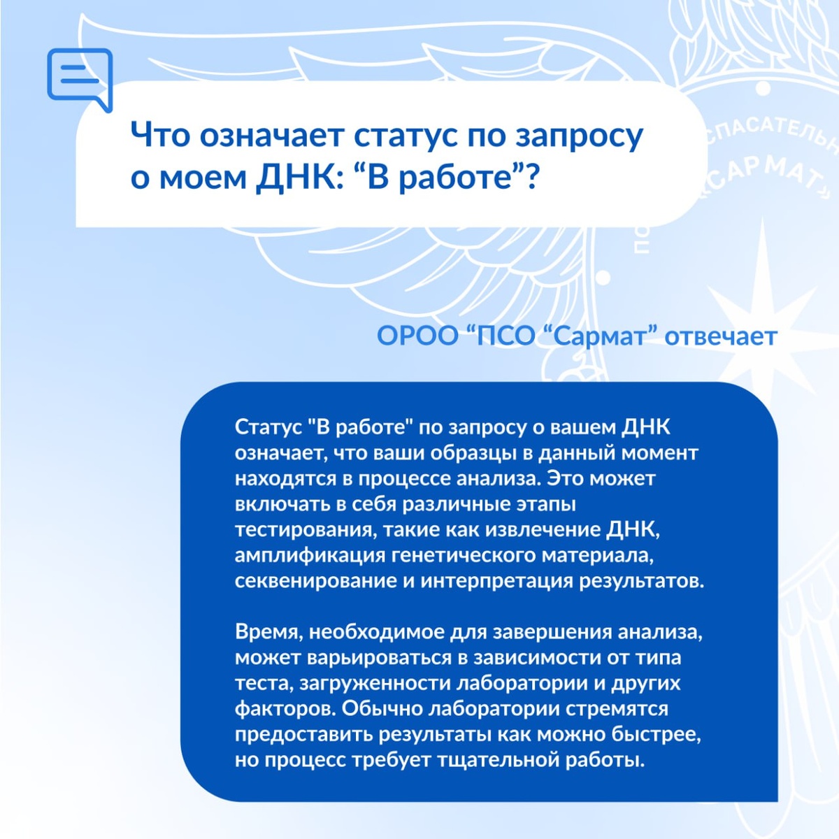 Мы подготовили для вас информацию по статусам ДНК по вашим запросам в чат-боте.
