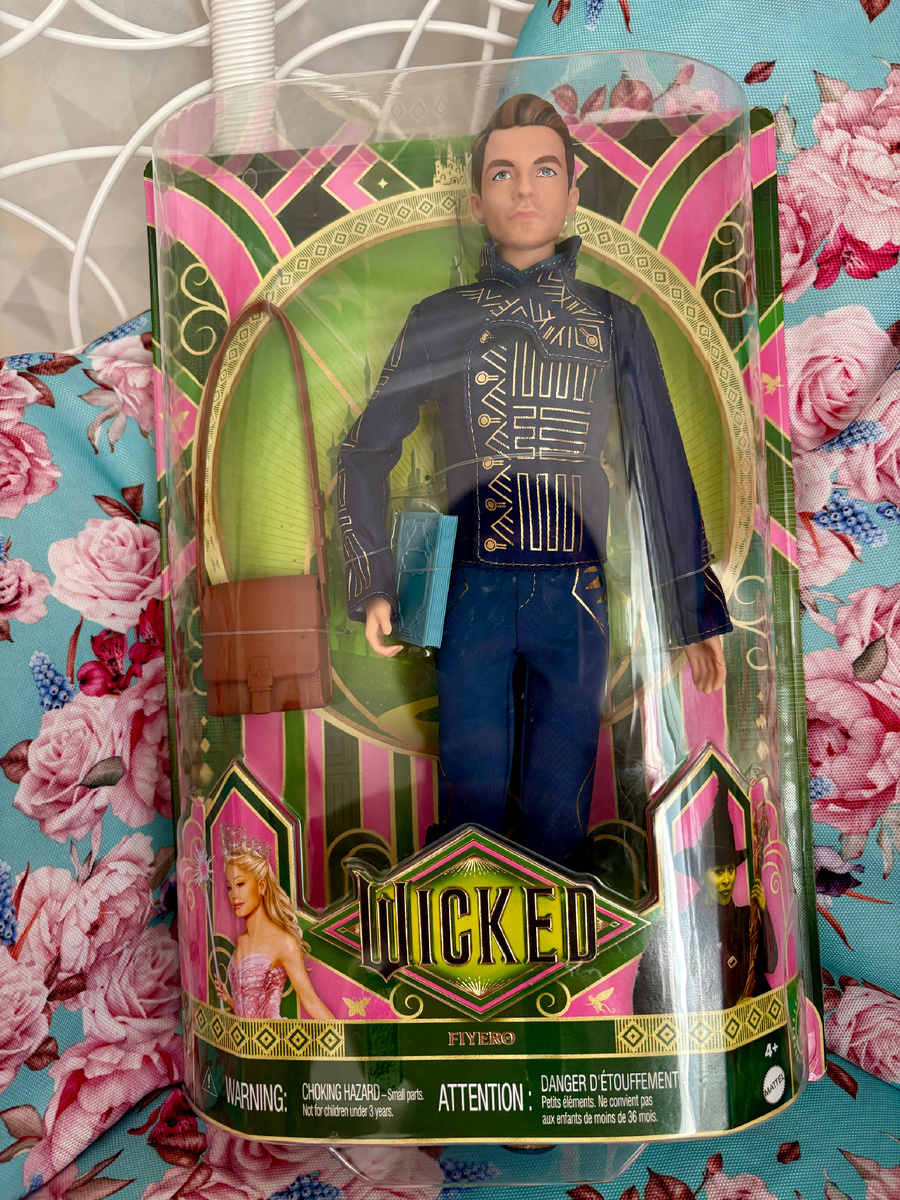 Ну что же, я умотала в Нижний Новгород немного попутешествовать, не закончив ни одну из своих задумок. Собиралась я в смешанных чувствах, настроения творить особо не было, поэтому даже Color Reveal не доснимала, хотя придумала для них забавный сюжет с участием одного очень неожиданного персонажа. Кстати, попробуйте угадать, с кем бы могли хорошо повзаимодействовать милашки-проявляшки?) Зато за день до отъезда пришла одна очень неожиданная и очень приятная новость: ко мне все-таки приехал принц Фиеро. И прям как обещали, после 20 апреля, то есть 21 апреля 🤣 Не придерешься. Я знаю, что некоторые коллекционеры уже поселили его к себе, но предлагаю еще раз на него полюбоваться. Он того стоит. Вот такая коробка у него, нарядная, зелено-розовая. На мой вкус, это неоднозначное сочетания цветов, но я так понимаю, что оно напрямую связано с фильмом: зеленый - цвет Эльфабы, а розовый - цвет Глинды. Они же изображены на передней части коробки, а на задней части в узоре использованы первые бук