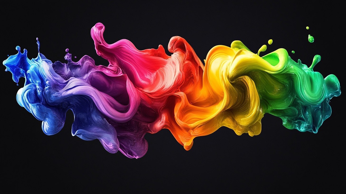 Создано на основе запроса: asubtle and beautiful flow of glossy paint every color of the pride rainbow flowing together in dynamic scene isolated on black background