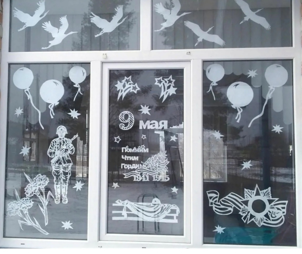Для оформления окон к 9 мая можно использовать различные материалы: