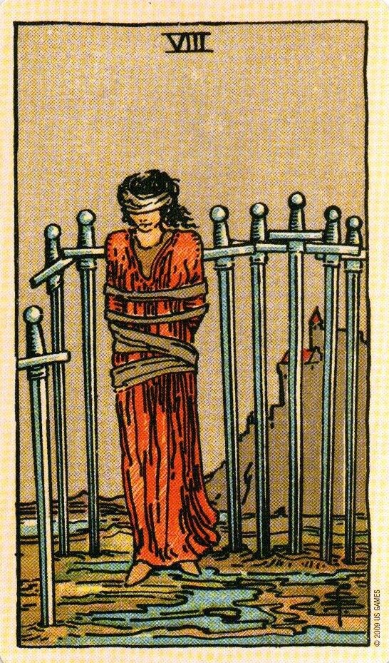 Значение Аркана Восьмёрка Мечей в колоде Таро Райдера Уэйта Смит