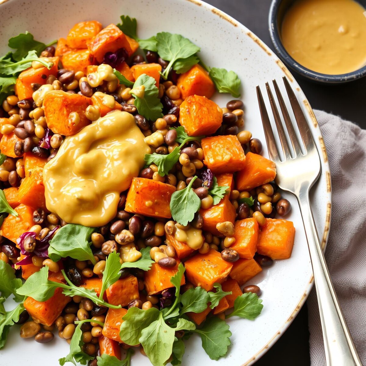 🍠 ТЁПЛЫЙ САЛАТ С БАТАТОМ, ЧЕЧЕВИЦЕЙ И СОУСОМ ИЗ ГОРЧИЦЫ - ТОПЛИВО ДЛЯ ТЕЛА И ВКУС ДЛЯ ДУШИ