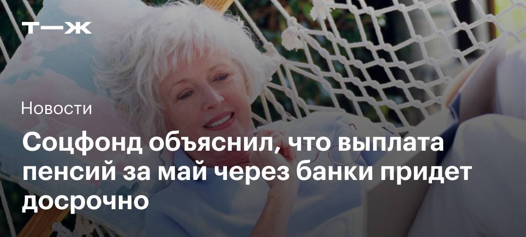 Социальный фонд России пояснил, что россияне, получающие пенсию с 1 по 5 мая, получат ее до 30 апреля за май С 6 мая доставка пенсий через банки будет осуществляться по стандартному графику: https://t-j.ru/inv-tg/pensii-v-mae-poluchat-ranshe/
