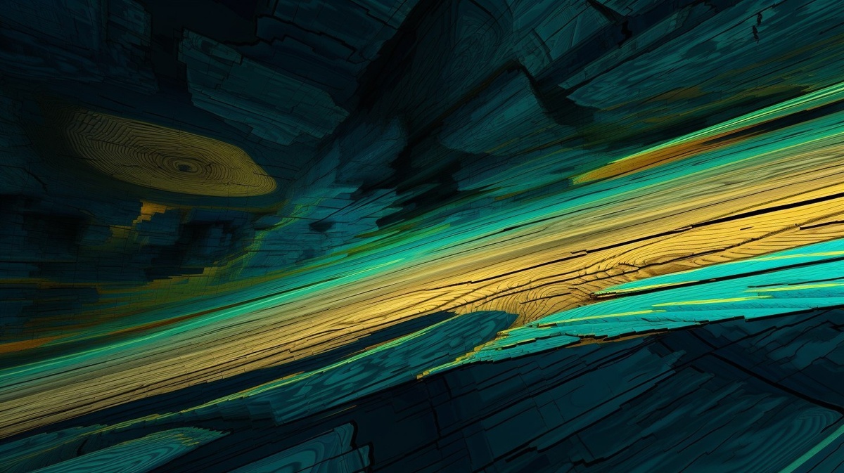 Создано на основе запроса: abstract wood textures that shift and morph into glowing geometric lines and floating math formulas, digital path tools and cursors subtly embedded in the surface, colors: midnight blue, electric turquoise-blue, lemon-lime yellow, light reflections and glowing effects enhance the textures, creating a futuristic glow --- Автоперевод: Абстрактные деревянные текстуры, которые переключаются и превращаются в светящиеся геометрические линии и плавающие математические формулы, инструменты цифрового пути и курсоры, тонко встроенные на поверхность, цвета: Midnight Blue, электрический бирюзовый синий, желтый лимонный лайм, световые отражения и светящиеся эффекты усиливают текстуры, создание футуристического свечения. Какое твое мнение? 🤔 https://dzen.ru/id/65c0c65c86e4f837c27b24d7 #ИИ #AI #нейросеть #midjourney #art