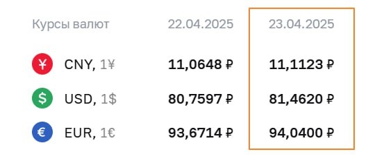 🇷🇺#RUB #fx ЦБ установил официальные курсы валют на 23 апреля