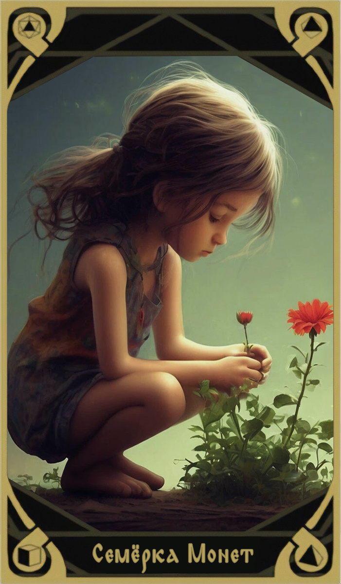 КАРТА ДНЯ НА ЗАВТРА, 23 АПРЕЛЯ. Семерка Монет из авторской колоды Ларисы Мун. Послание от Семерки Монет: всякий раз, когда тебе хочется отказаться от своих целей, в которые ты вложил так много энергии, вспомни о том, сколько времени требуется семенам, чтоб они проросли. В жизни ничего не бывает легко или просто так – нужны усилия, чтобы добиться желаемого эффекта. И не всегда это только усилия. В большинстве случаев – это еще и ожидание того момента, когда невзрачная гусеница превратится в прекрасную бабочку. Если вам выпала эта карта помните, что своими просьбами вы привлекли внимание Абсолюта. И теперь он решил проверить, насколько вы преданны своей мечте. Готовы ли вы идти до конца, опираясь на свою веру, или вас хватает только на то, чтобы озвучить свое желание, переложив ответственность за его реализацию на плечи Пространства. Так что пришла пора показать, на что вы способны. Напомню, что вы всегда можете заказать для себя расклад на моей колоде «Другая реальность» и получить подр