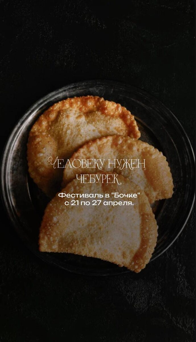 ✨ Сочный, ароматный, золотистый, с хрустящей кружевной корочкой и насыщенной, пряной начинкой. Прямо как из детства, правда? Самое время освежить воспоминания и отправиться в «Бочку», где проходит Фестиваль Чебуреков! 🥟 👨🍳 Шеф-повар подготовил для вас несколько вариаций: 🌟С печеными овощами, а также с картофелем и сморчками — идеален в качестве закуски. 🌟С тремя видами сыра (имеретинским, сулугуни и брынзой) — вы точно не ограничитесь одним! 🌟Том Ям — для любителей гастрономических открытий и необычных сочетаний. 🌟Ну и куда без вечной классики? — со свининой и бараниной. Много сочной начинки и тонкое, воздушное, поджаристое тесто! Какой чебурек именно ваш? Своего фаворита можно будет выбрать на нашем фестивале с 21 по 27 апреля. Встречаемся в «Бочке»! 👋