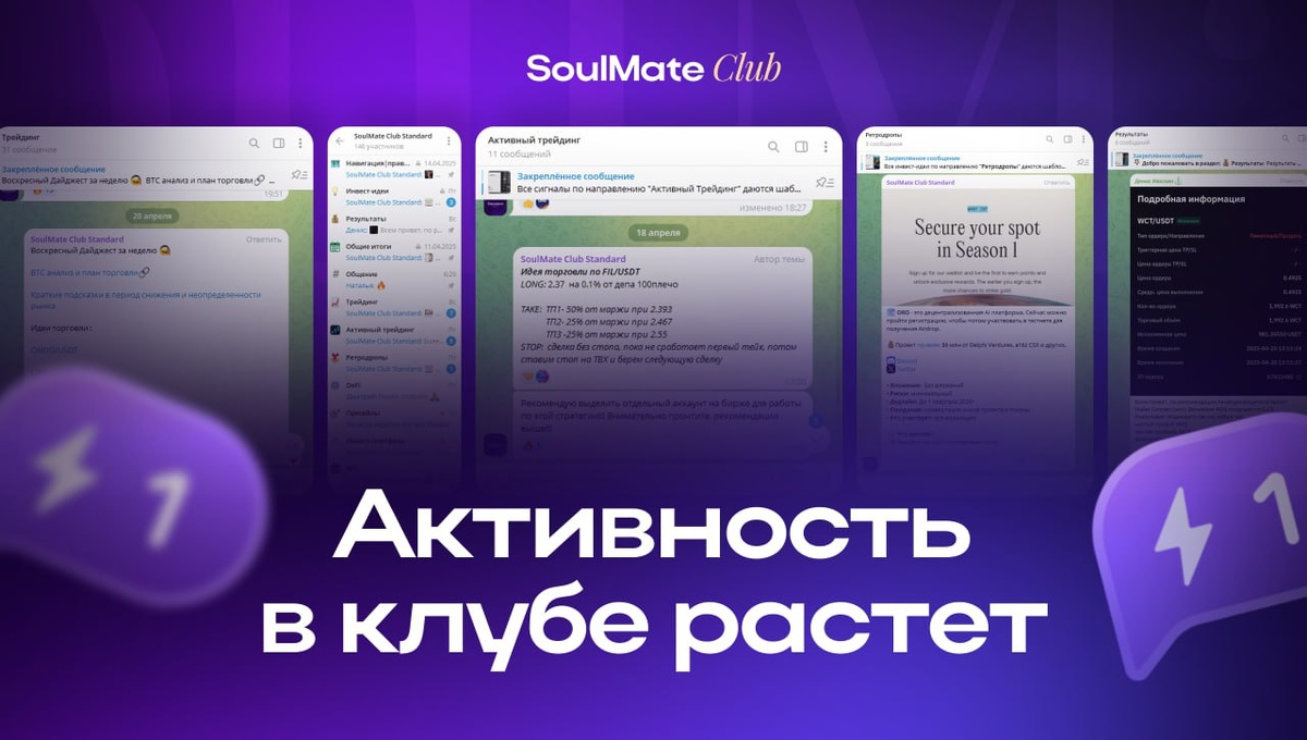 📊 Клуб активно набирает обороты! Каждый день в SoulMate Club: 🟢 Появляются свежие инвест-идеи 🟢 Публикуются сигналы по трейдингу 🟢 Участники делятся своими результатами и кейсами И что особенно важно — результаты получают участники клуба, которые сразу начали применять инструменты на практике. Буквально сегодня, свежая инвест-идея, про лаунчпул на ByBit, с высоким процентом APR 800%😉 🔥 Мы в самом начале большого пути, и уже видим, как клуб превращается в живую, эффективную среду для роста, денег и поддержки. 💡 Сейчас мы активно собираем обратную связь, внимательно отслеживаем поведение участников, чтобы: — выявить все «узкие» места; — упростить доступ к самым важным возможностям клуба; — выстроить систему, при которой каждый новичок сможет легко включиться и получать максимум пользы. 📈 У нас есть четкий план по развитию клуба. Но перед тем как двигаться дальше, мы хотим быть уверены, что фундамент надёжный — и это включает как структуру, так и удобство использования. Если